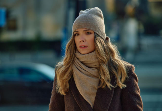Kobieta, najprawdopodobniej Kalina z serialu "Na Wspólnej", ze zmartwioną miną idzie ulicą, ubrana w brązowy płaszcz, beżowy szalik i czapkę. Kontekst zdradza, że Łukasz szantażuje ją intymnym nagraniem. Więcej o dramatycznych wątkach "Na Wspólnej" i innych Super Seriale znajdziesz na naszym portalu.