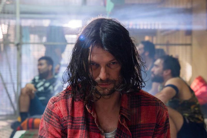 Mężczyzna z zarostem i posiniaczoną twarzą w czerwono-czarnej kracie siedzi na krześle, patrząc w obiektyw kamery, obok której widać dziennikarza. Jest to kadr z serialu „Pierwsza miłość”, w którym Paweł rozpoznaje Kingę. Więcej o losach bohaterów na Super Seriale.